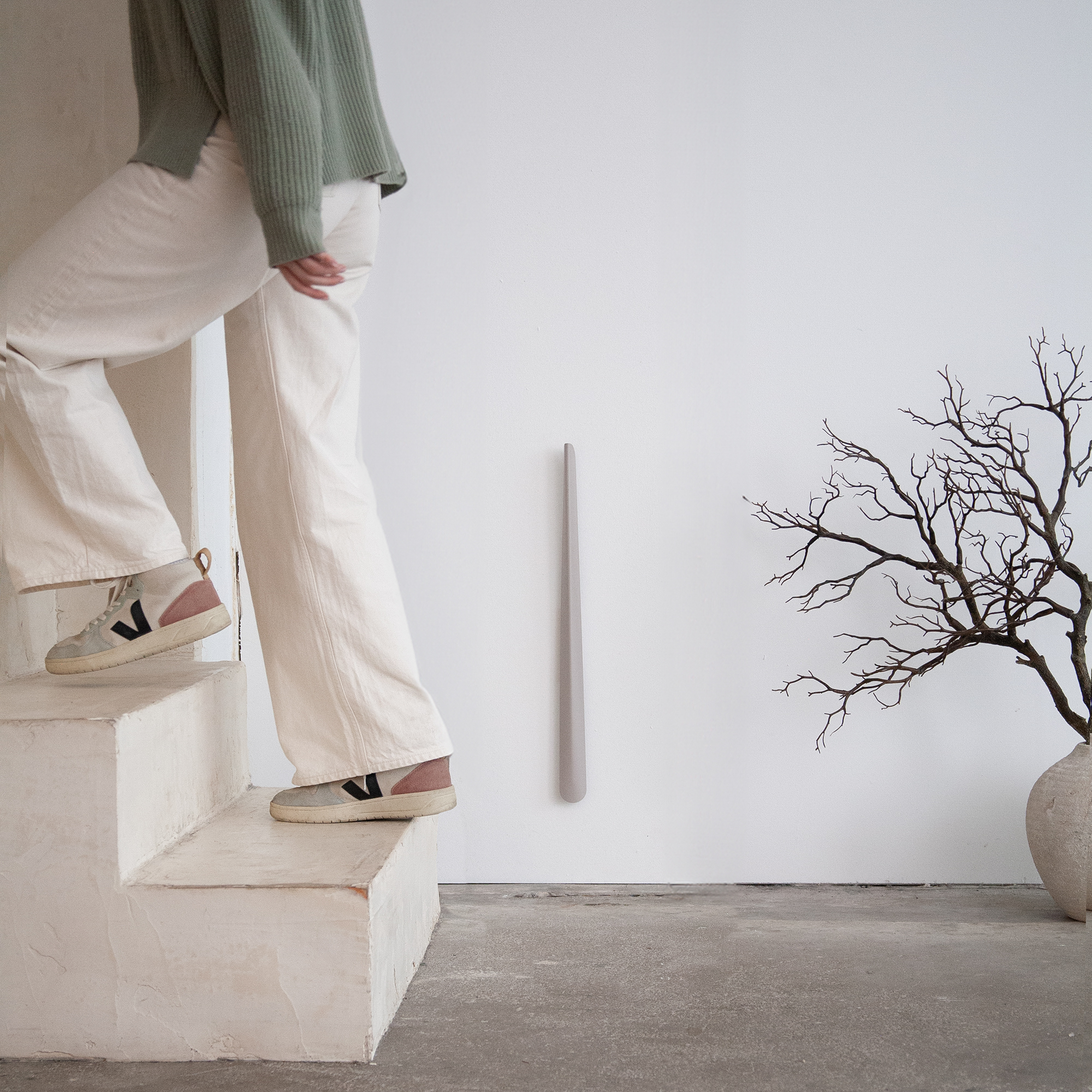 De DON schoenlepel, onderdeel van de gezamenlijke collectie van Spinder x BUDDE, is een exclusief ontwerp van BUDDE, een gerenommeerde ontwerpstudio gevestigd in Duitsland.DON is een eenvoudige en stijlvolle schoenlepel met een slank ontwerp en gemakkelijke bruikbaarheid. Deze schoenlepel is gemaakt van hoogwaardig staal met een moderne matzwarte afwerking, waardoor het duurzaam is van boven tot onder. Het handvat van de 60 cm lange schoenlepel is ergonomisch ontworpen voor een comfortabele grip. DON maakt het makkelijk om snel en soepel in je favoriete schoenen te glijden. Je kunt het ook handig aan de muur bevestigen met de bijbehorende magnetische houten bevestiging, waardoor het zowel toegankelijk als decoratief is. DON is verkrijgbaar in vier eigentijdse kleuren: taupe, groen, Terra of klassiek zwart.BUDDE is opgericht in 2019 en wordt geleid door architect Johannes Budde en Meike Papenfuss. Als sterk duo is Johannes Budde het creatieve brein achter BUDDE, aangevuld met de zakelijke en merkexpertise van Meike Papenfuss.