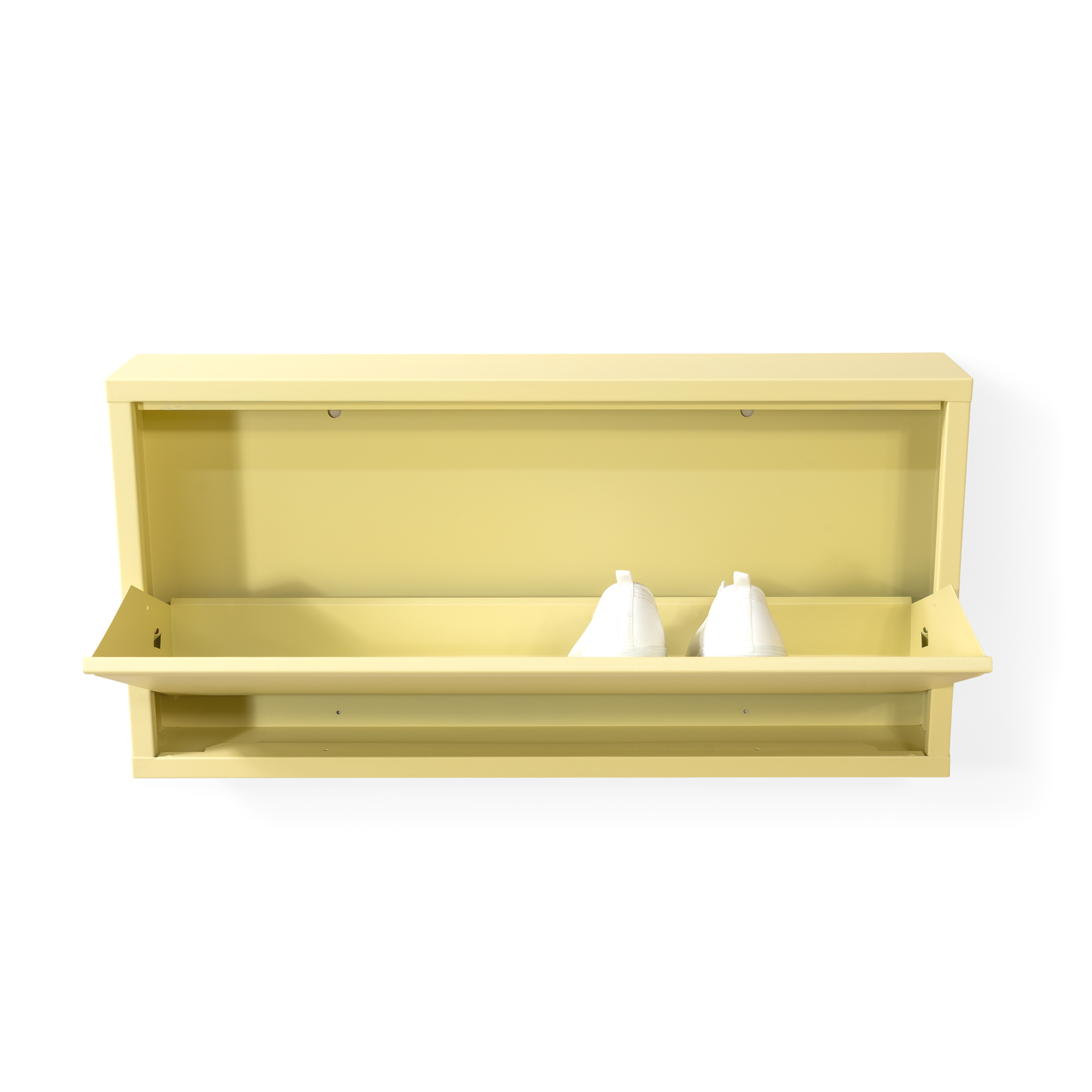 De Billy 1 in de nieuwe kleur Butter Yellow is jouw oplossing tegen rondslingerende schoenen. Het strakke en ondiepe design van gepoedercoat staal maakt hem ideaal voor in de hal, slaapkamer of welke plek dan ook waar schoenen graag een eigen leven leiden. De Billy 1 biedt ruimte voor minimaal drie paar schoenen. Plaats ze met de hak naar achteren en je hebt in no-time weer een opgeruimde hal. Onze tip: leg je ze neer zoals in een schoenendoos, dan past er vaak nóg een extra paar bij ook. Geef hem een plekje aan de muur en geniet van een opgeruimd én stijlvol thuis.